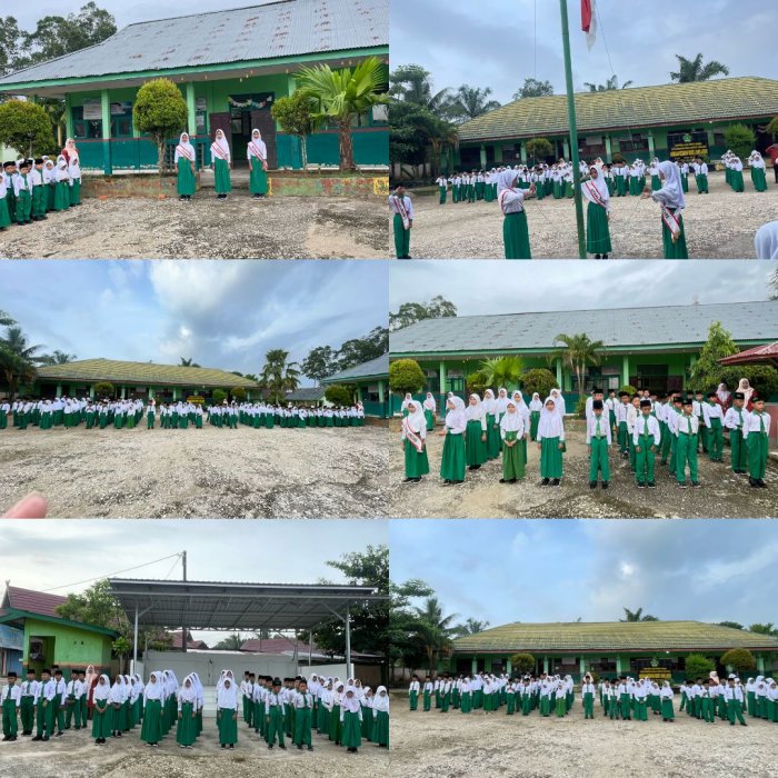 Upacara yang berlangsung di halaman utama madrasah diikuti dengan khidmat oleh seluruh siswa dari kelas I hingga VI, beserta guru dan staf tata usaha. Setelah melewati beberapa minggu libur, antusiasme siswa dalam mengikuti upacara terlihat sangat tinggi, dengan berdiri rapi dan menghormati saat lagu kebangsaan Indonesia Raya berkumandang.