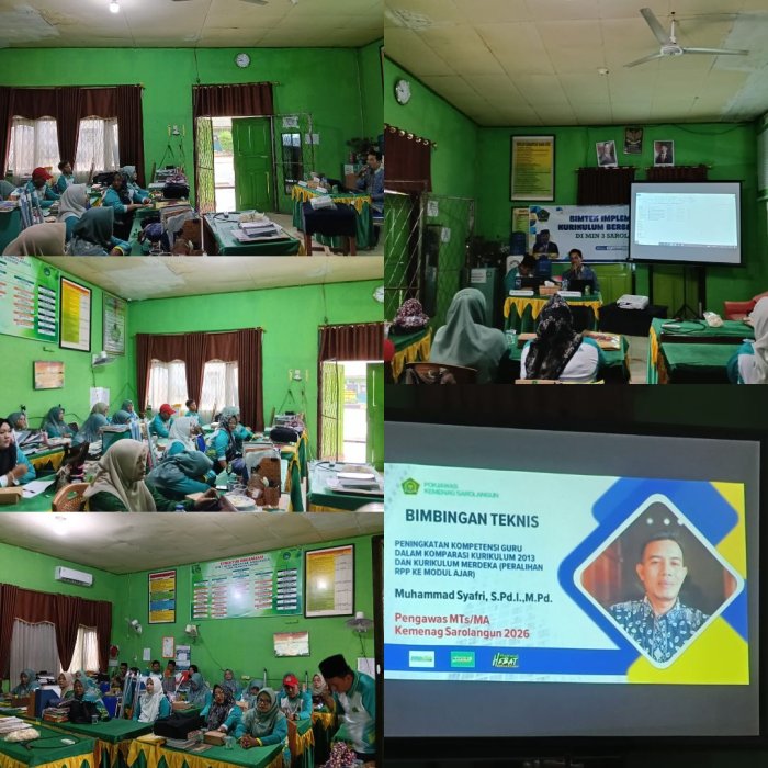 Agenda ini diikuti secara penuh oleh Kepala Madrasah, jajaran majelis guru, hingga staf Tata Usaha (TU). Kehadiran Bapak M. Syafri, M.Pd., selaku Pengawas Madrasah, memberikan bobot tersendiri dalam kegiatan ini, di mana beliau hadir untuk memantau sekaligus memberikan arahan strategis terkait inovasi kurikulum tersebut.